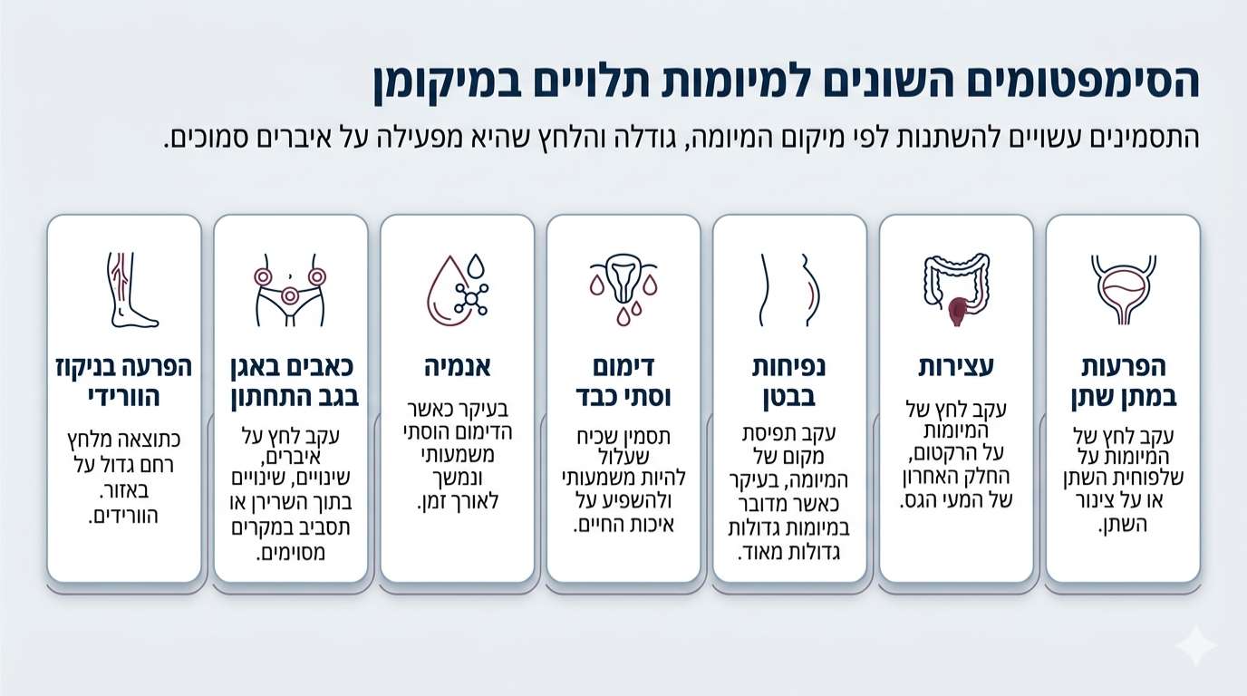 הסימפטומים השונים למיומות תלויים במיקומן: